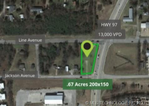 .67 acres of land available for sale or ground lease in Sapulpa, Oklahoma. This property offers 200 feet of Frontage on Highway 97 with a traffic count of just over 13,000VPD and has access points on both the North and South end of the property (Line Ave and Jackson Ave respectively). Lot dimensions are approximately 150' x 200'.