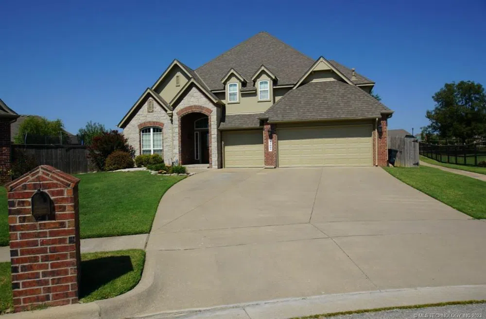 Beautiful Country Woods home offers tranquil landscaped views, spacious rooms, vaulted ceilings, ample storage, and coveted neighborhood amenities right at the back door. Home backs to walking trail and neighborhood pool. The walking trail leads to a pond, parks, and tree-lined green spaces. An oversized lot includes an extra fenced-off privacy area in the backyard perfect for a garden, hot tub, or outdoor storage. The welcoming exterior boasts brick, stone, and freshly painted siding. The lovely interior boasts crown molding, iron stair rails, granite/corian/marble countertops, and a gas fireplace. A faux finish complements the office, formal dining, and kitchen with bay windows. A spacious living room wired for surround sound and a grand master suite with jetted tub and large walk-in closet complete the downstairs. Upstairs includes 3 large bedrooms and a sound-proofed game/media room, also wired for surround sound. A pullman bath connected to the oversized middle bedroom could allow for a 2nd master suite separate from the hall bath. The home has a newer roof with a 50-year material and 25-year labor warranty transferred to the new owner put on at the end of 2016. Desirable location close to the highway, 1.9 miles to the Glenpool shopping center and 5.3 miles to Tulsa Hills, close to the Riverwalk and new outlet mall.