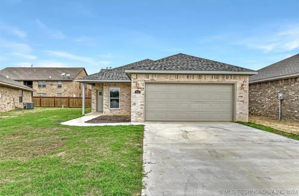 Experience the charm of this custom-built, 3-bedroom, 2-bathroom home nestled in the coveted Prairie Reserve community of Calera. Boasting 1417 sq ft of sparkling porcelain tile flooring, the thoughtfully designed interior features custom cabinets, granite countertops, and stainless steel appliances. The kitchen, a chef's dream, comes complete with a spacious pantry and convenient pull-down faucet sprayers. LED can lighting casts a warm and inviting glow throughout. The master suite offers a walk-in closet, double sinks, and an oversized custom tiled shower, ensuring comfort and luxury you deserve. An expansive backyard provides a perfect setting for outdoor entertainment or serene relaxation on a quiet cup-de-sac. Located only 1.5 miles from the Choctaw Casino, amenities are never far. Ideal for first-time home owners or small families seeking a blend of style, convenience, and tranquility. Call or text today to schedule a showing!