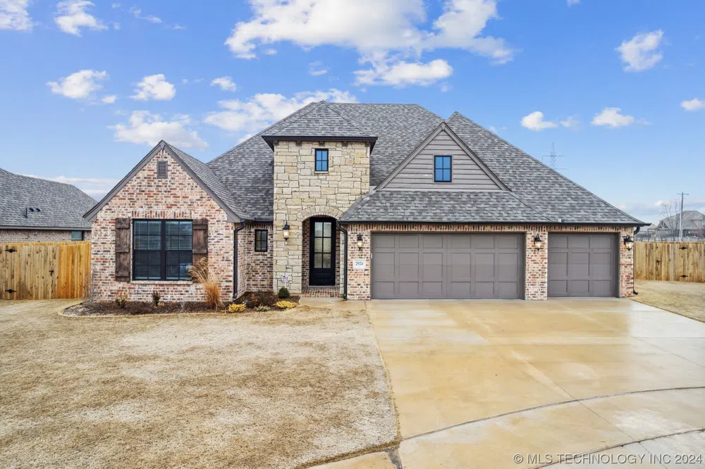 Better than new full brick home in Broken Arrow's Whiskey Ridge located on quiet cul-de-sac lot! Loaded with premium finishes, including wood floors throughout, Kitchen with granite, custom-built cabinets, large walk in pantry and pot filler. Large Living Room with cozy stone fireplace and wall of windows perfect for letting in the natural light. 4 Bedrooms and 2.5 baths (4th front bedroom could be a study). Spacious Primary bedroom and ideal bath with double sinks, soaker tub and seamless walk in shower with a convenient bench open to the Laundry and Mud Room. Super energy efficient home with spray-foam insulation, 16 SEER AC, 95% efficient furnace. Welcoming A-frame patio overlooking fully fenced yard.