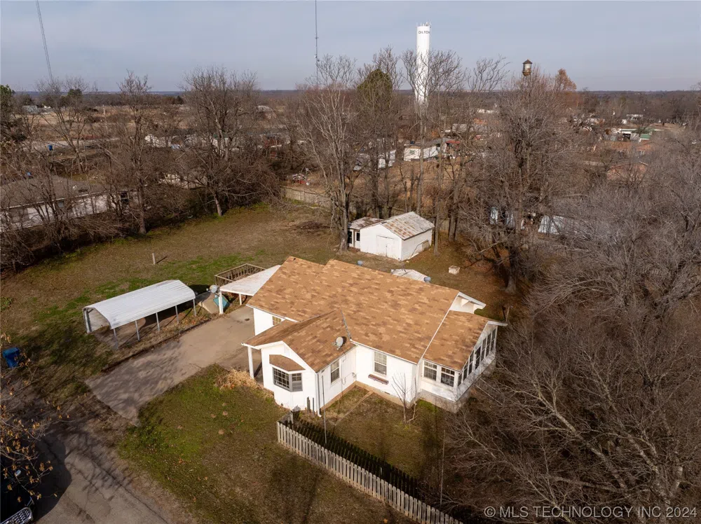 PERFECT HOME FOR YOUR FAMILY WITH NOTHING TO DO BUT MOVE IN! This open concept home features 2 bedrooms, 1 bathroom, sits on a corner lot just under a half-acre. This home is 2 bedrooms but does have a room off the living room that could be that extra bedroom space needed or use as an extended sitting room or office. Rounded archway entries, neutral paint throughout. The home features an enclosed front porch surrounded by windows. The large U-shaped kitchen has an abundance of cabinet and countertop space and built in pantry for your cooking, canning, and family entertaining. Lots if storage space in this home. Large yard privacy fenced 3 sides, large pecan trees, cellar, detached 24 x 20 garage/shop building with electric, carport entry connected to the house just off the kitchen. RV/mobile home electric/sewer/water tap hook-up on the west side of the property. All of this enclosed on a corner lot, giving that welcome home feel. The metal carport does not stay with the property. This property is a must see! 40 minutes to Tulsa and 30 minutes to Stillwater