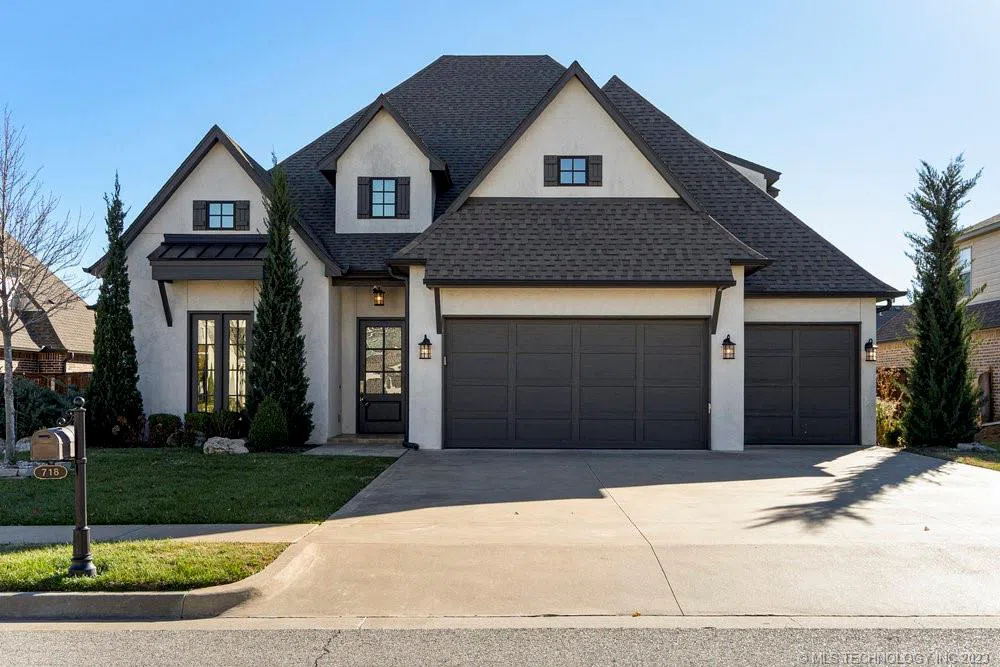 This newer luxury move in ready home is in gated Haddington Heights is in the award-winning Jenks School district. This wonderful home has neutral designer finishes, oversized windows for gorgeous natural light and a fantastic floor plan. Primary bedroom suite + guest bedroom with full bathroom + home office + formal dining room + den + powder bathroom are on the first level. The den features a beamed ceiling, floor to ceiling stone fireplace flanked by open shelving and cabinets. The kitchen has a quality stainless steel gas range, double ovens, side by side freezer/refrigerator, large walk-in pantry, and island. The second-floor features 2 bedrooms with a private full bathroom, a home theater & flex/bonus room. The covered patio features Travertine tile. The 3-car garage has a smart looking epoxy floor finish. Located proximate to popular Tulsa Hills Mall shopping, restaurants, and much more & I 75 for easy commuting to downtown Tulsa & Jenks. A quick closing is possible.